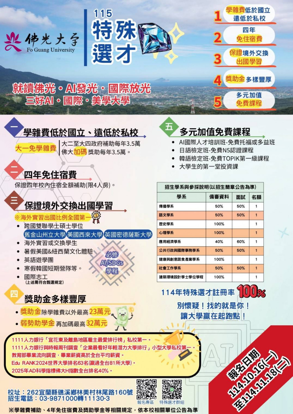 轉知:南華大學「115學年度學士班特殊選才招生簡章」