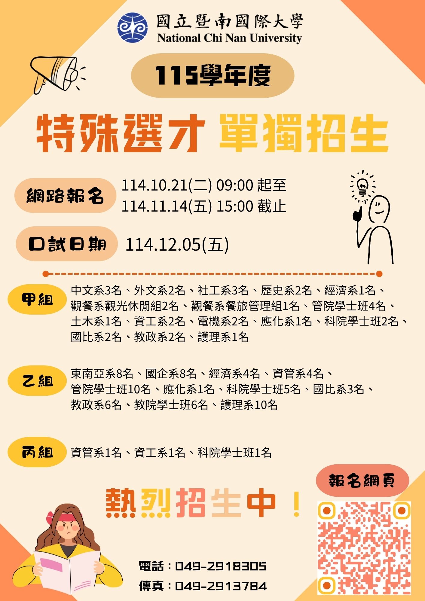 四、 | 招生簡章供免費下載,網址:https://exam.ncnu.edu.tw/。 |