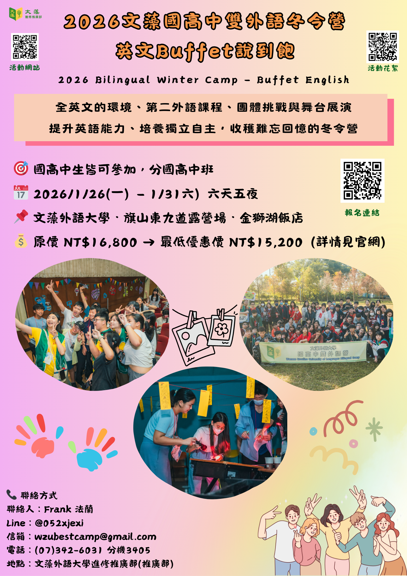 轉知:文藻外語大學2026文藻國高中雙外語冬令營