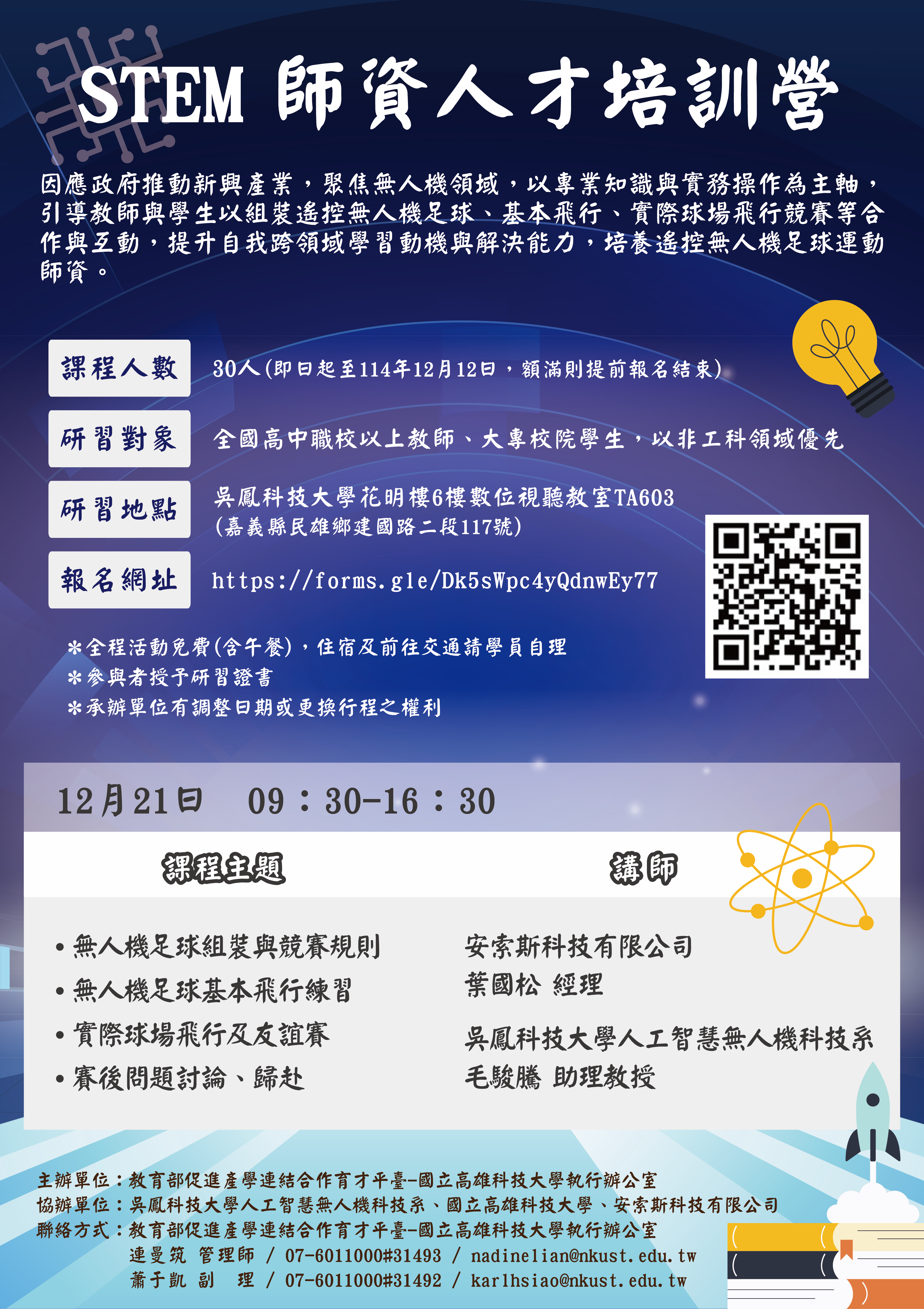 | (三) | 課程人數:上限30人(報名時間為即日起至114年12月12日,額滿則提前報名結束)。 |