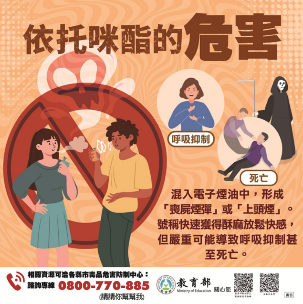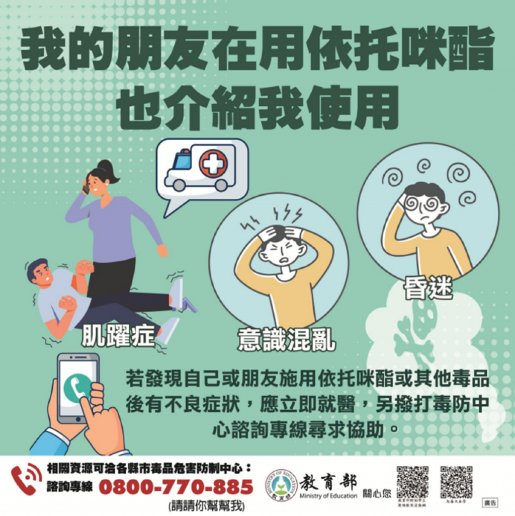 更多資訊請上教育部防制學生藥物濫用資源網查看。